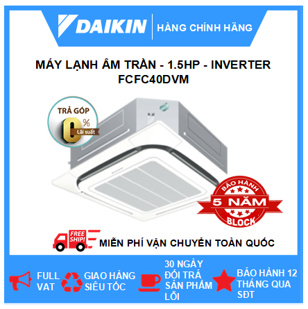 Máy lạnh âm trần 1.7HP (1.7 ngựa) chính hãng Daikin, trả góp 0%
